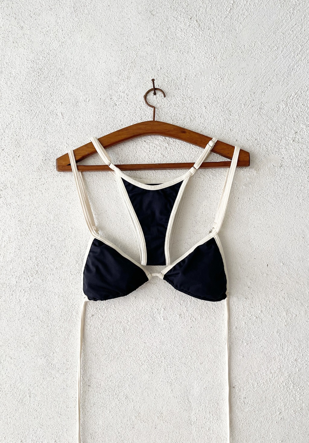 Nosso modelo cortininha clássico, com acabamento em viés de cor oposta a peça e alças ajustáveis com reguladores. Esse modelo tem as mesmas medidas e modelagem do Top Maya Tradicional.